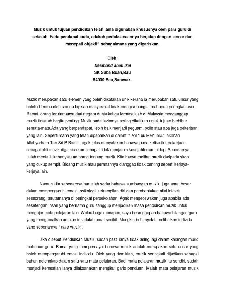 Pendidikan Melalui Muzik Kelebihan Aktiviti Muzikal Dalam Pengajaran