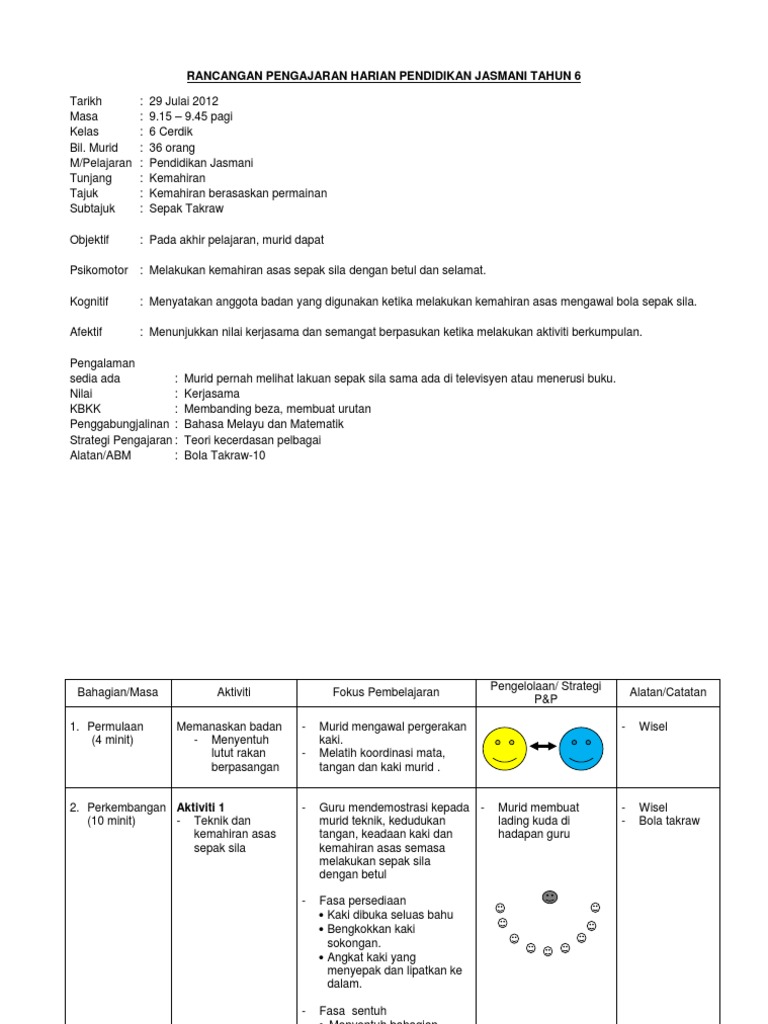 Rph Pendidikan Jasmani Tahun 6 Takraw
