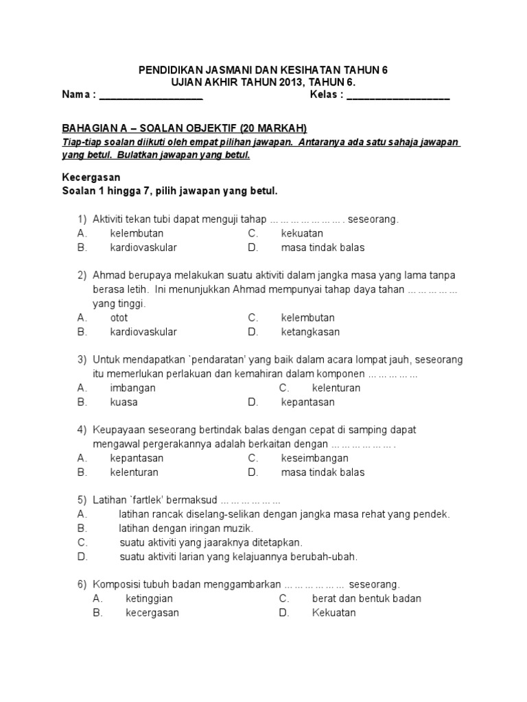 Soalan Pendidikan Jasmani Tahun 6 2013