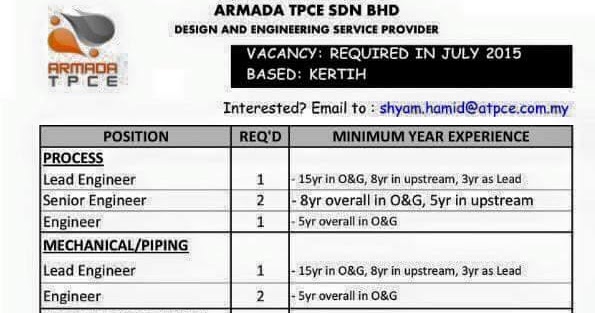 Jawatan Kosong Jawatan Kosong Kerteh Armada Tpce