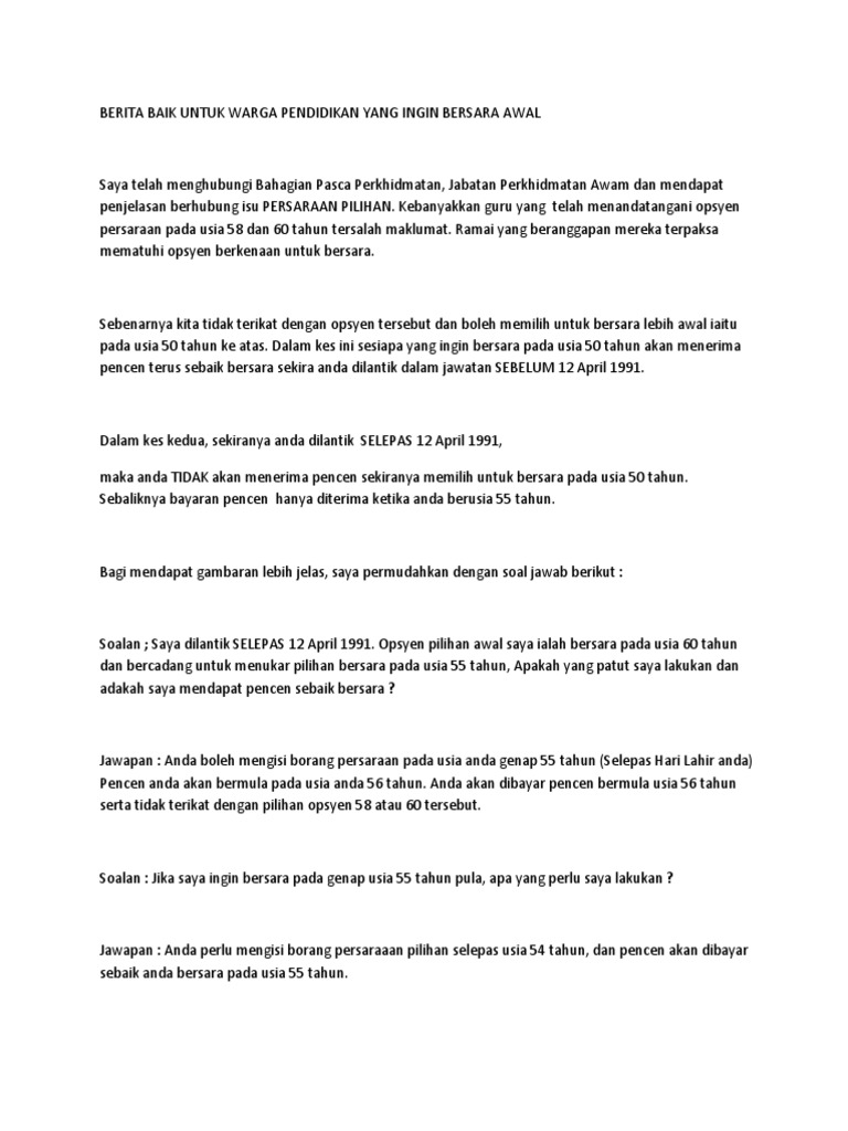 Panduan Memohon Bersara Pilihan Bersara Awal Pendidik2u