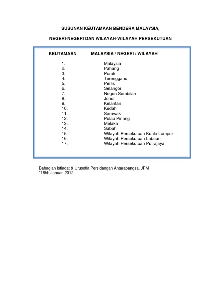 Susunan Keutamaan Bendera Malaysia 2012
