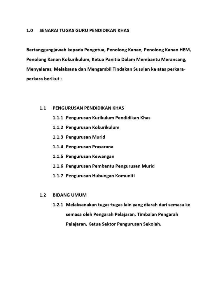 Bidang Tugas Pembantu Pengurusan Murid Pendidikan Khas