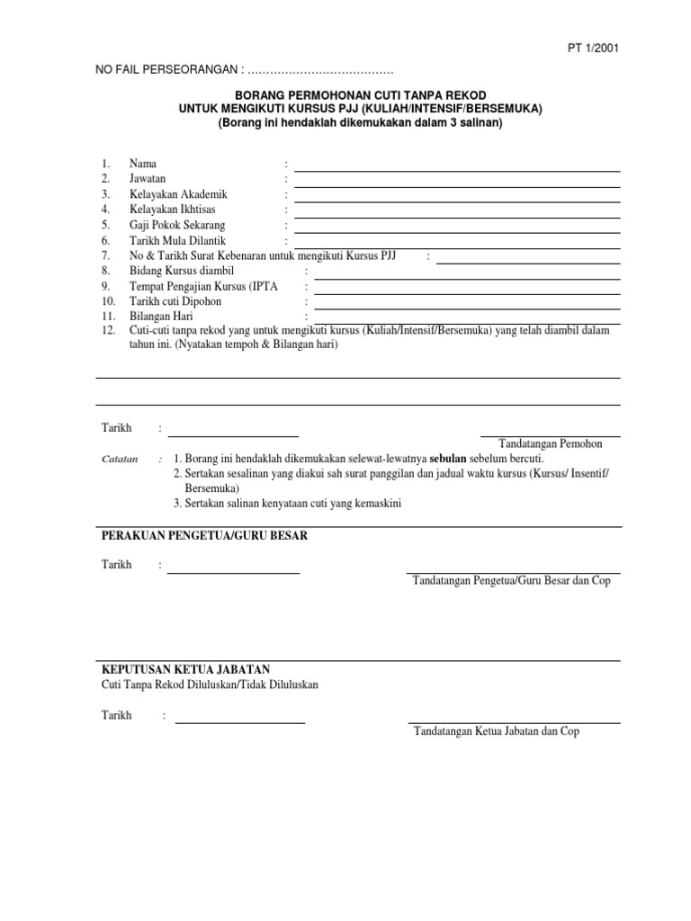 Pdf Borang Cuti New Atiey Razali Academia Edu