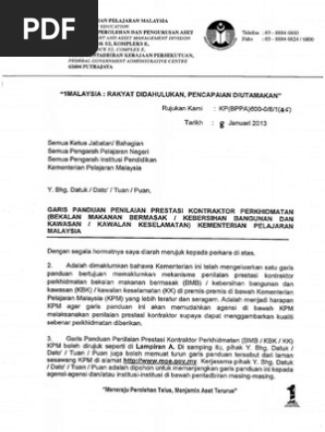 Https Www Moe Gov My Pekeliling 1009 Garis Panduan Penilaian Prestasi Kontraktor Perkhidmatan File