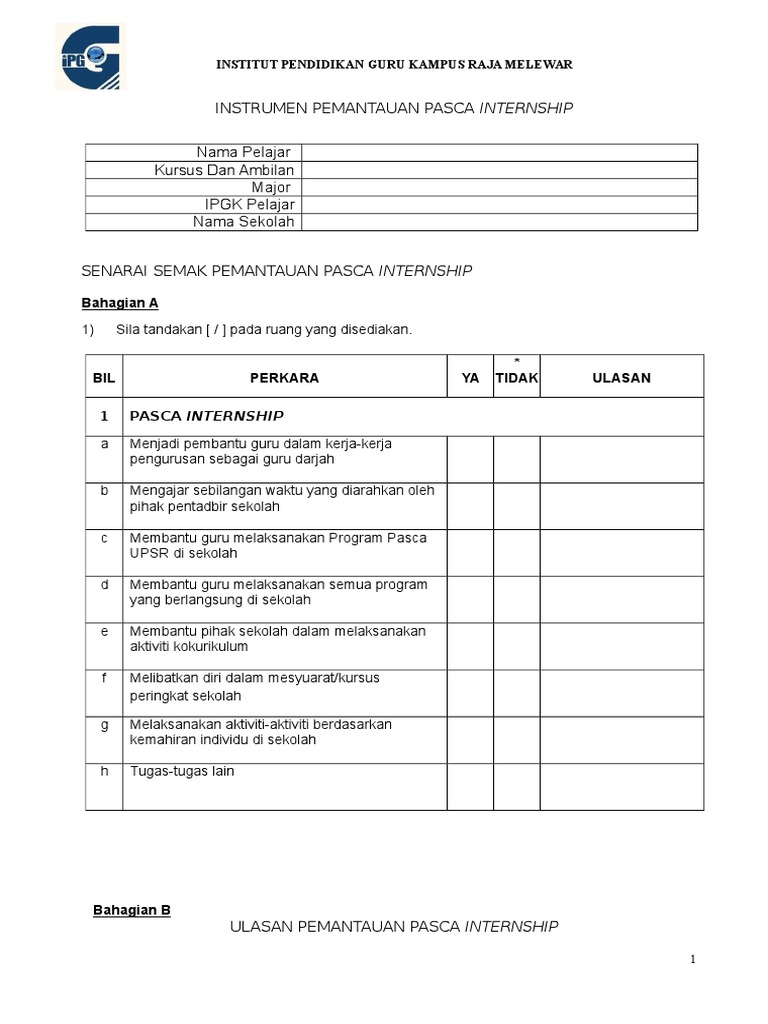 Borang Pemantauan Pasca Internship