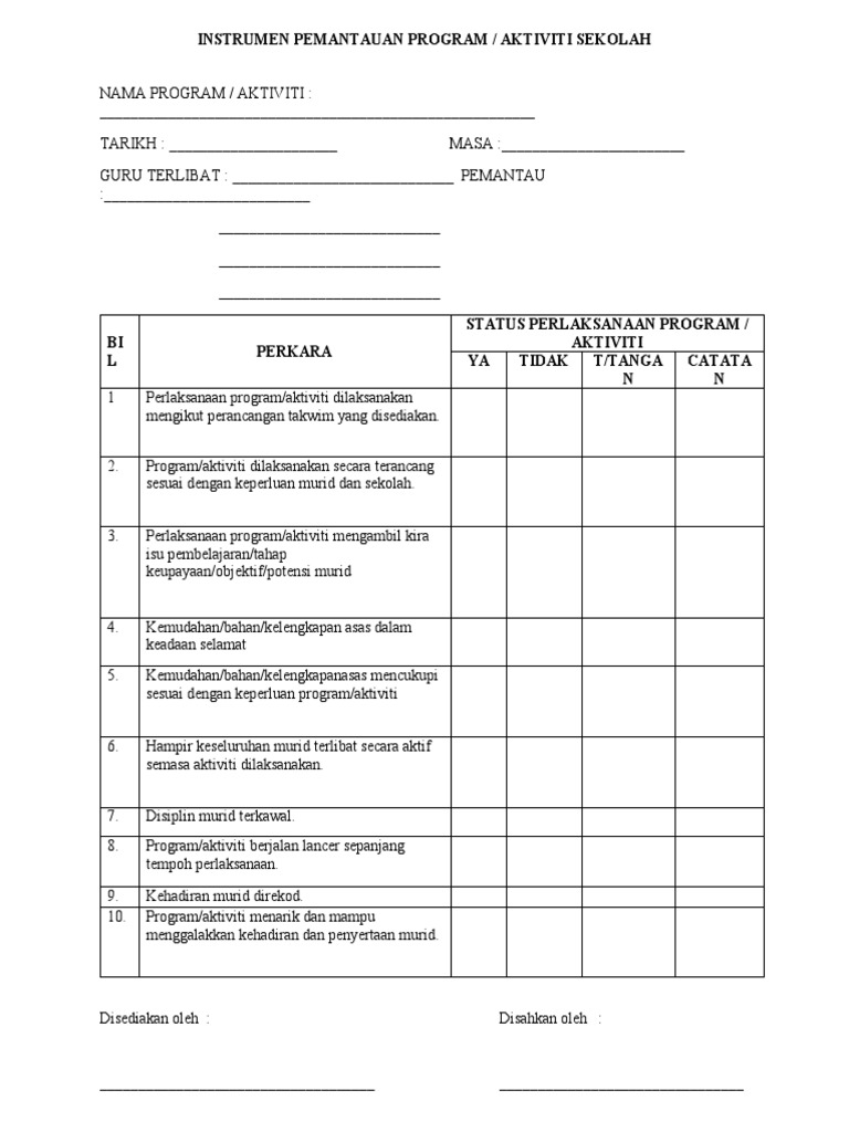 Instrumen Pemantauan Pelaksanaan Aktiviti Kokurikulum Di Sekolah Pdf