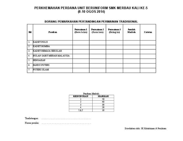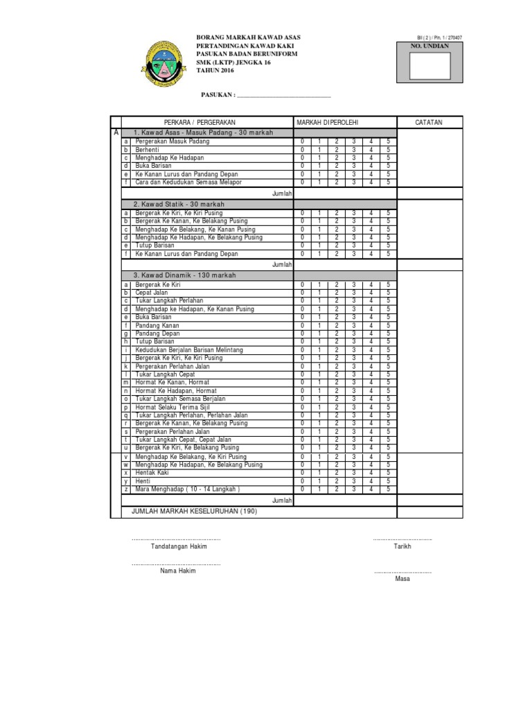 Borang Markah Pertandingan Kawad Kaki Unit Beruniform Smk Seri Damai