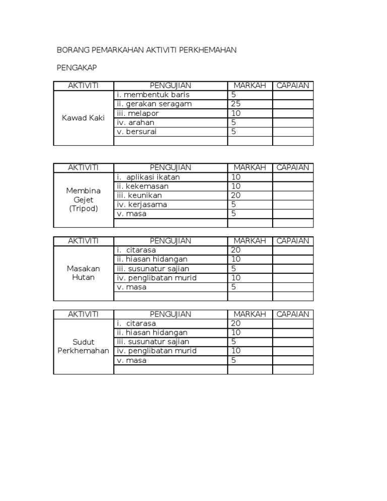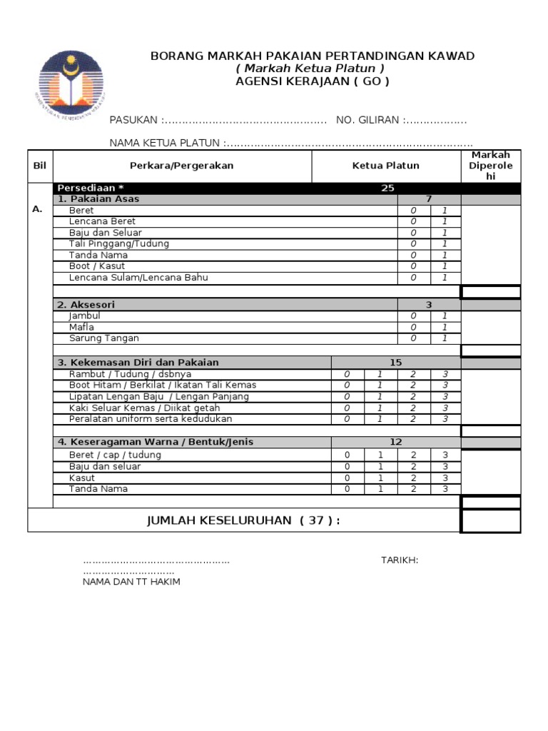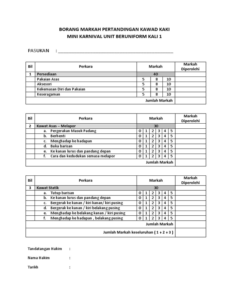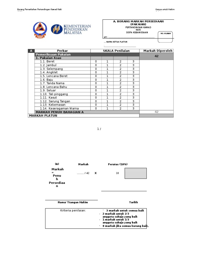 Borang Pemarkahan Kawad Kaki Docx Document