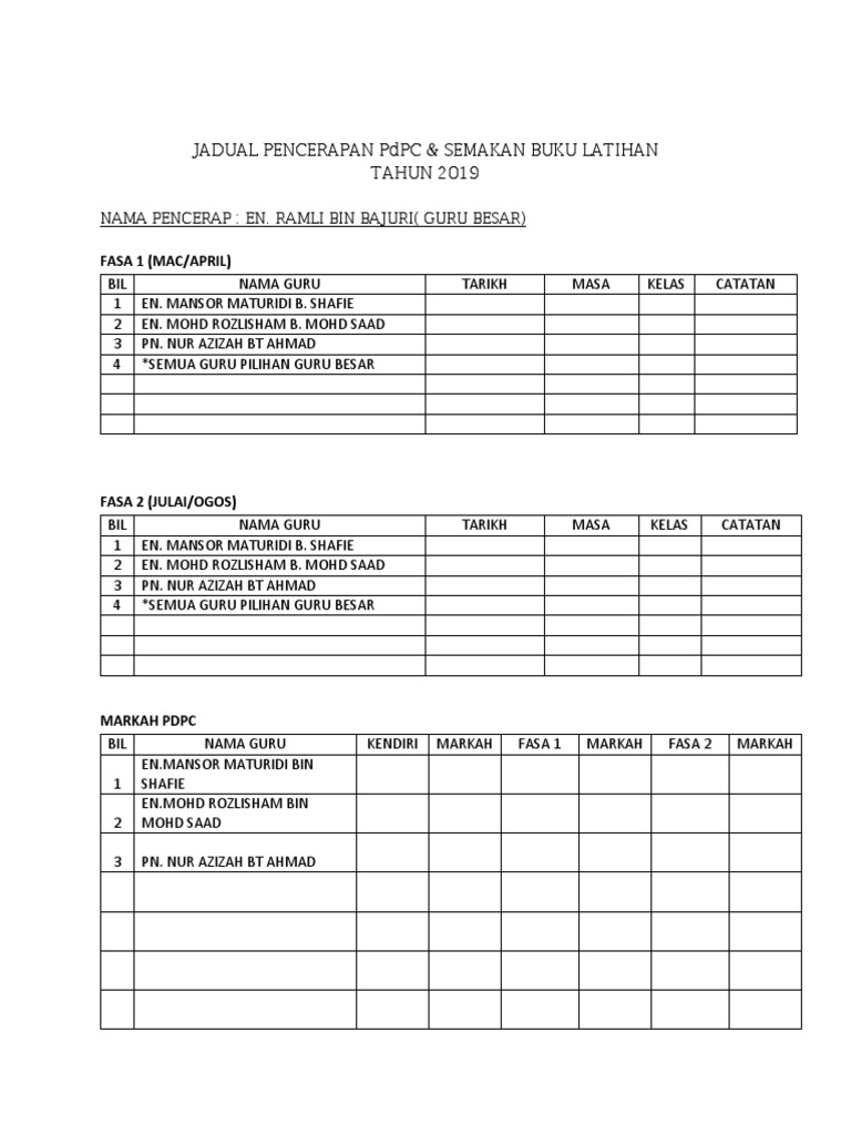 Jadual Pencerapan Guru Siri Dua 2019 Docx