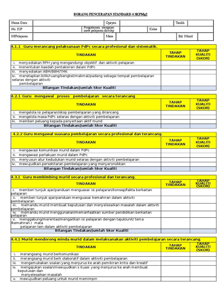 Borang Pencerapan Standard 4 Skpm G2 23 1 2017