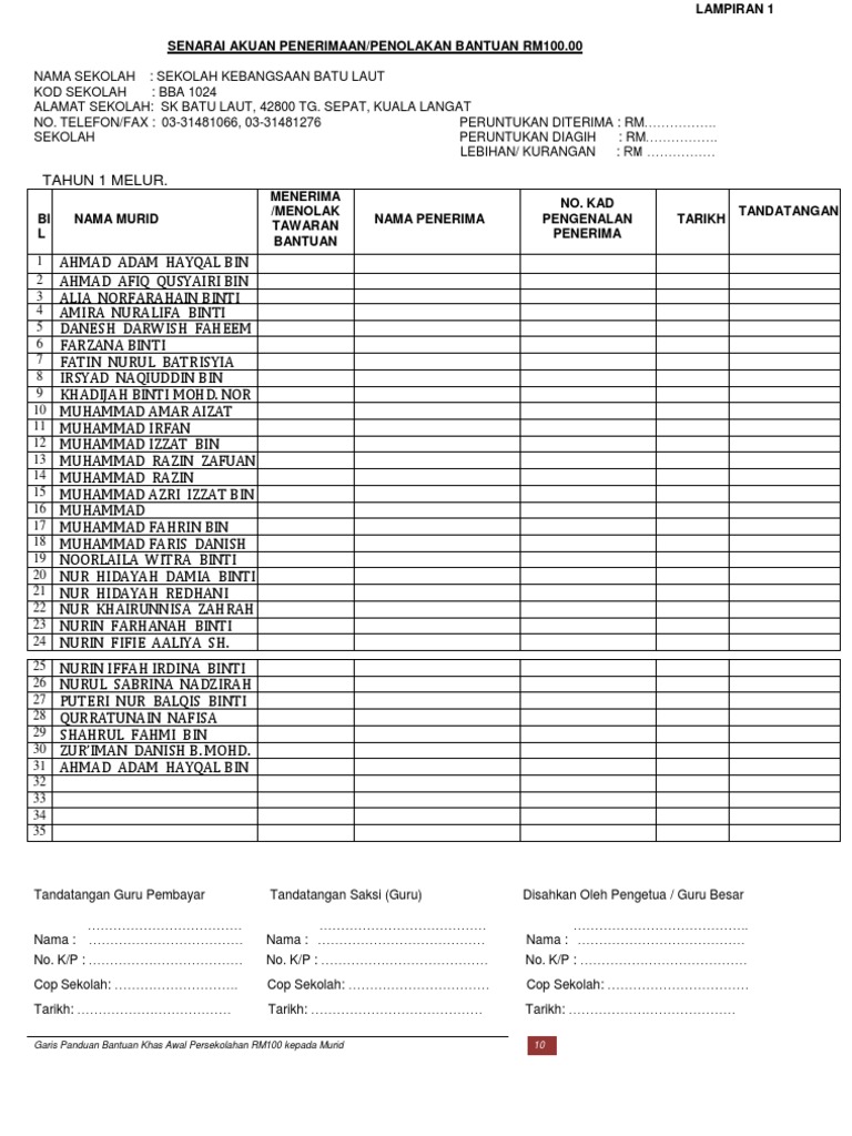 Senarai Akuan Penerimaan Bantuan Awal Persekolahan 2013 Xls Document