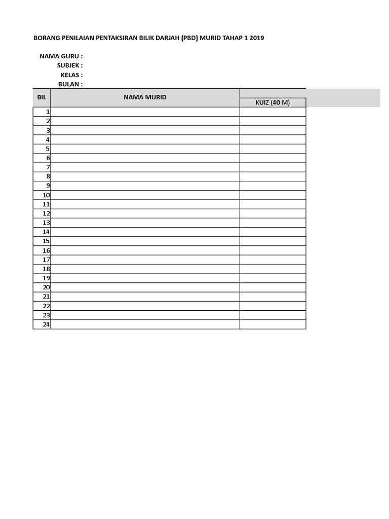 Contoh Borang Pentaksiran Bilik Darjah Sekolah Rendah