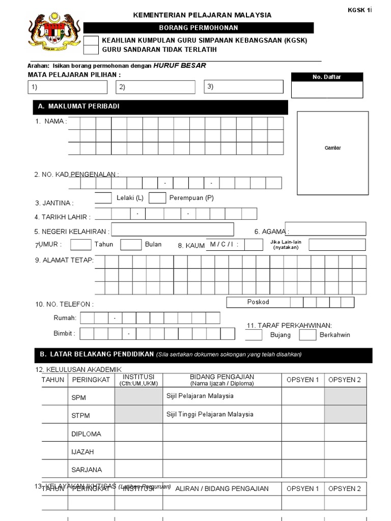 Borang Permohonan Bagi Jawatan Guru Ganti Kgsk