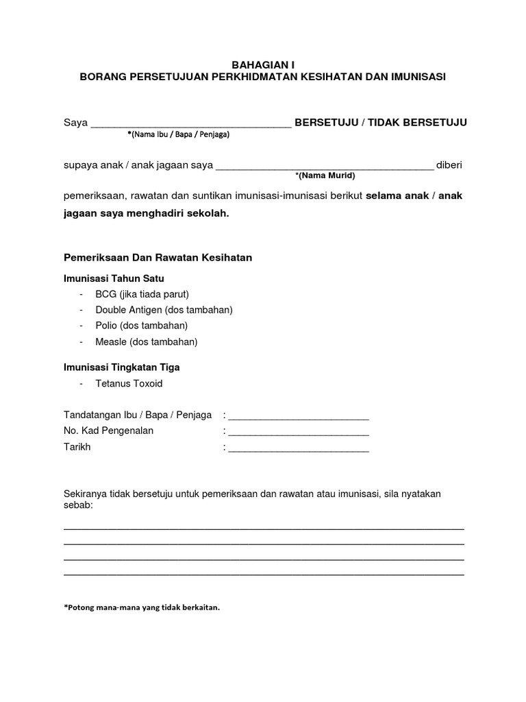 Borang Persetujuan Perkhidmatan Kesihatan Dan Imunisasi
