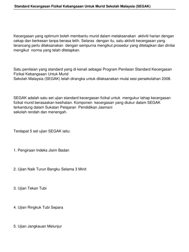 Standard Kecergasan Fizikal Kebangsaan Untuk Murid Sekolah Malaysia Segak Education Malaysia Standard