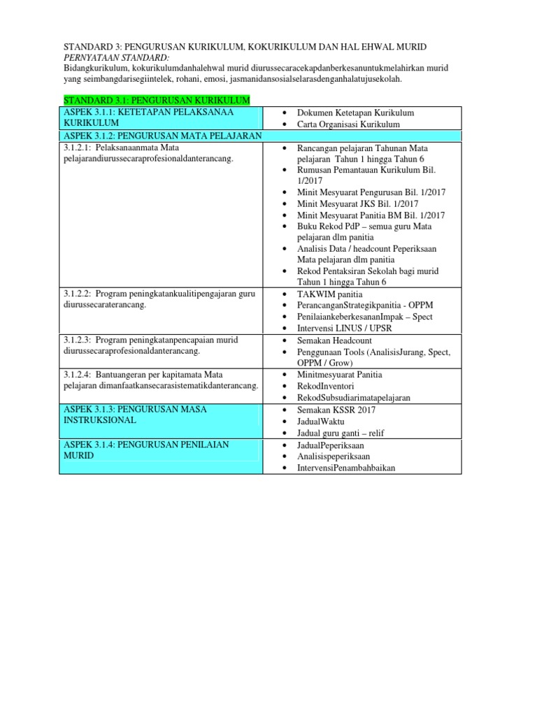 Senarai Semak Evidens Skpmg2 Smk Segama Lahad Datu