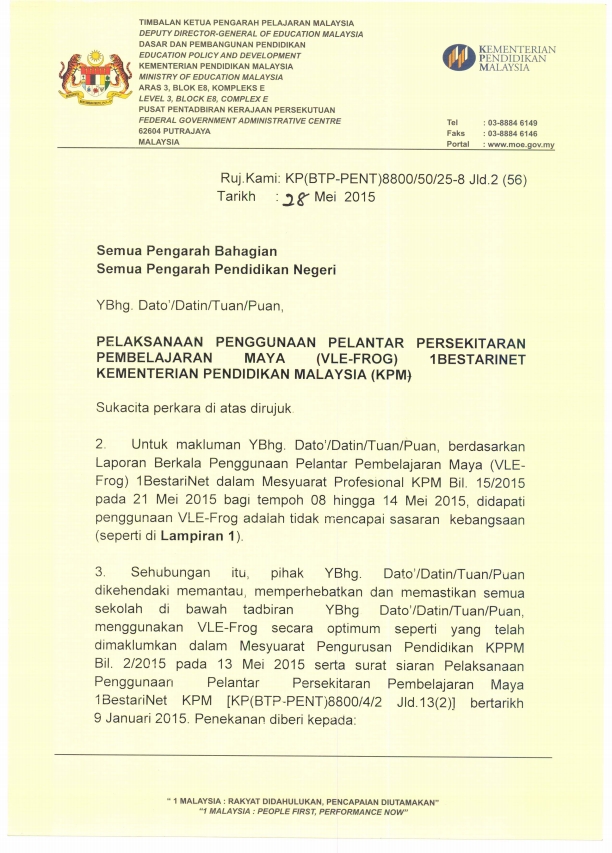 Teknologi Untuk Pendidikan Bestari Kpi Vle Frog Jun Hingga Disember 2015