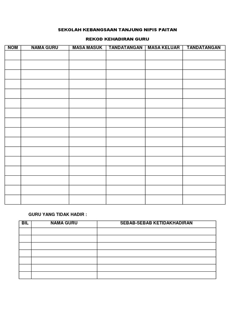 Template Excel Buku Rekod Kedatangan Murid Pendidik2u