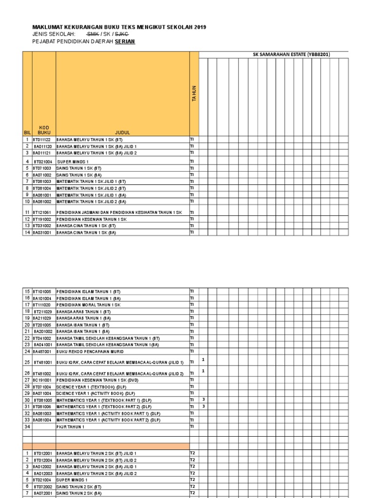 Spbt S K Jalan Pegawai Senarai Buku Teks Dan Aktiviti