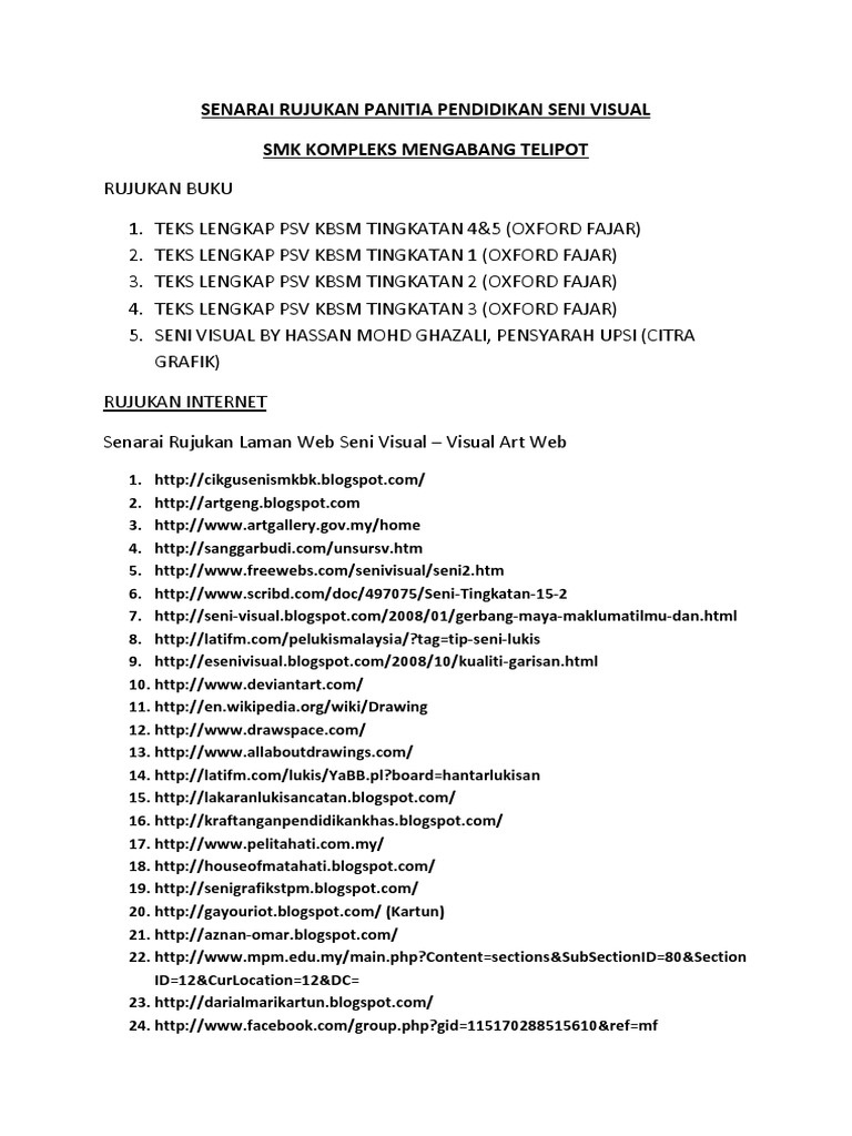 Senarai Rujukan Panitia Pendidikan Seni Visual