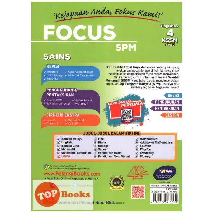 Topbooks Pelangi Focus Spm Sains Kssm Tingkatan 4 2020 Shopee Malaysia