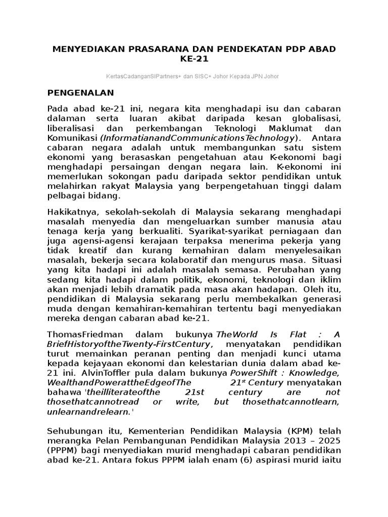 Pendidikan Abad Ke 21 Isu Dan Cabaran