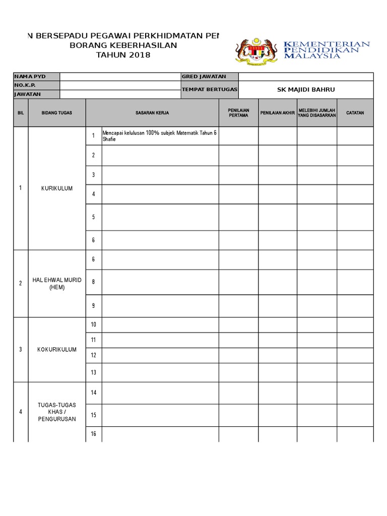 Contoh Borang Keberhasilan Guru Penolong Akademik Biasa Sumber Pendidikan