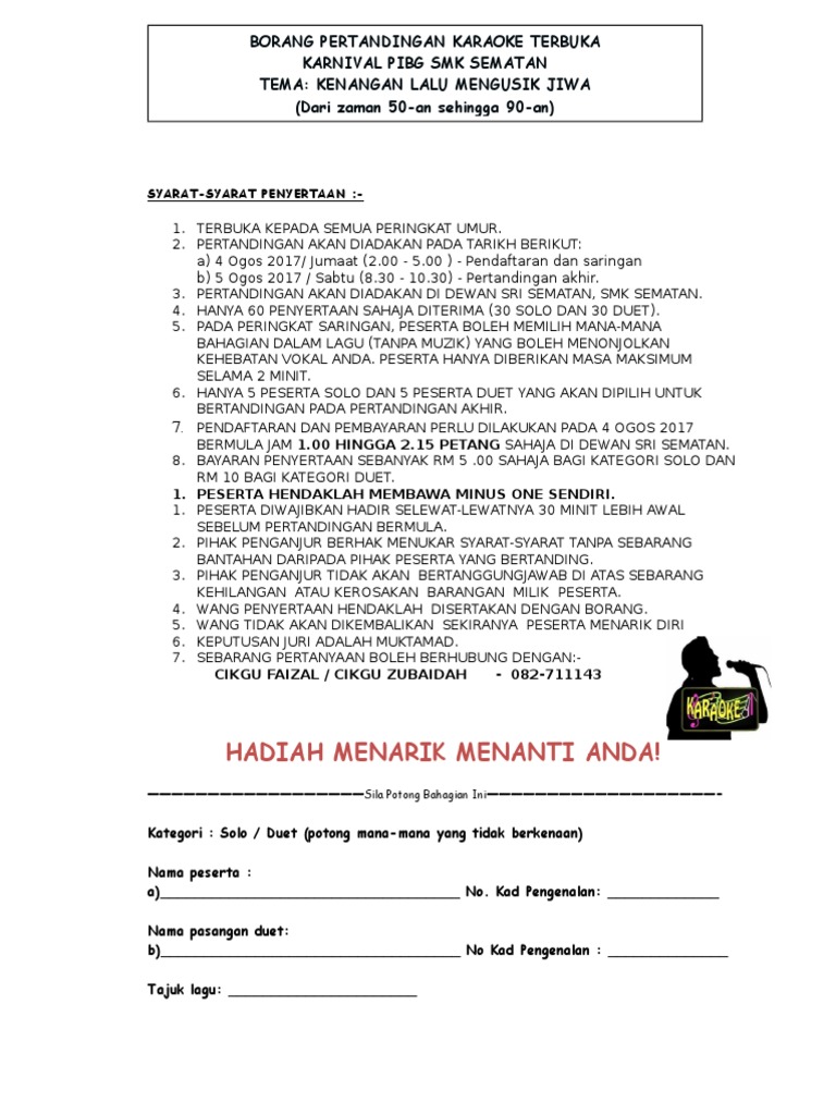Contoh Borang Penyertaan Pertandingan Menyanyi Sekolah Rendah