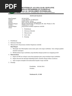 Contoh Notulen Rapat Keputusan Penyusunan Struktur Organisasi Sekolah Berbagai Struktur