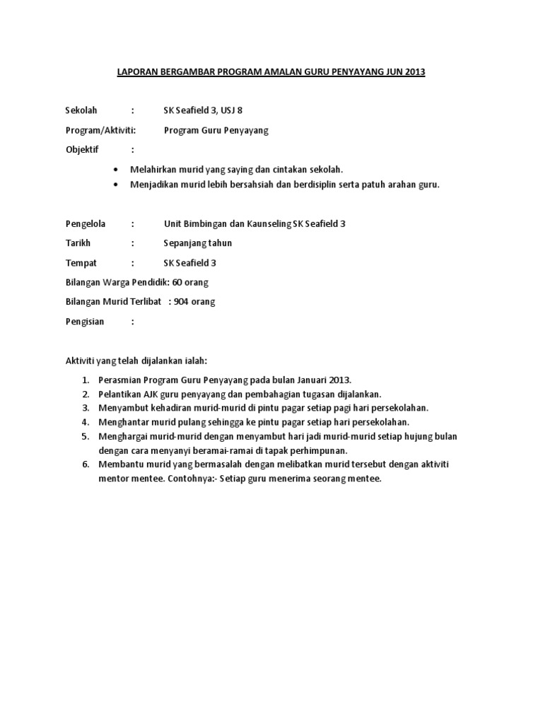 Laporan Bergambar Program Amalan Guru Penyayang Jun 2013
