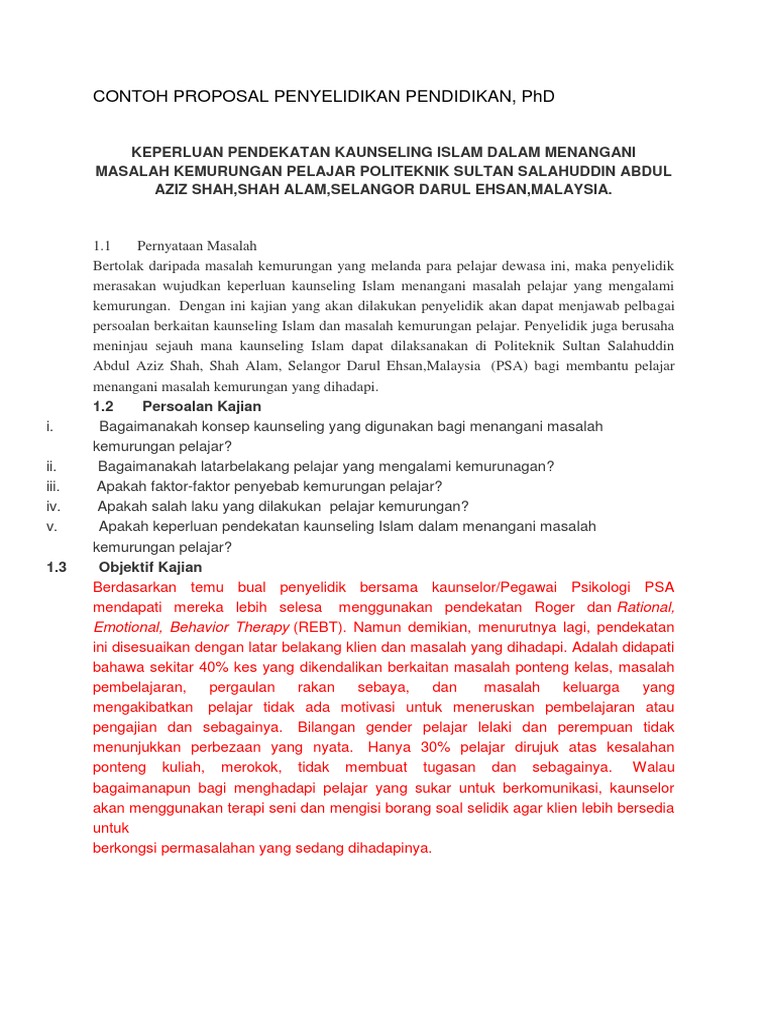 Contoh Proposal Penyelidikan Pendidikan Phd