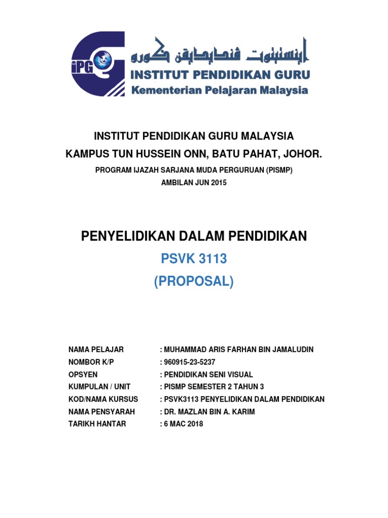 Pdf Contoh Proposal Penyelidikan Dr Mohd Anuar Ramli Academia Edu