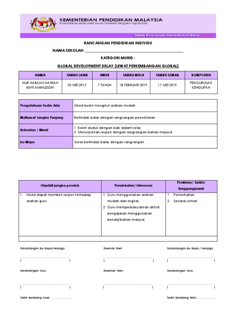 Rpi Docx Rancangan Pendidikan Individu Bagi Tahun 2019 A Maklumat Murid Nama Murid Mathanaashini A P Vasu No S Beranak No Kp Cc 92207 Jantina Course Hero