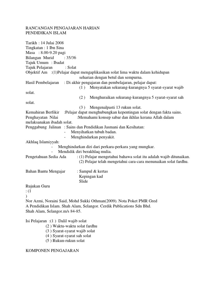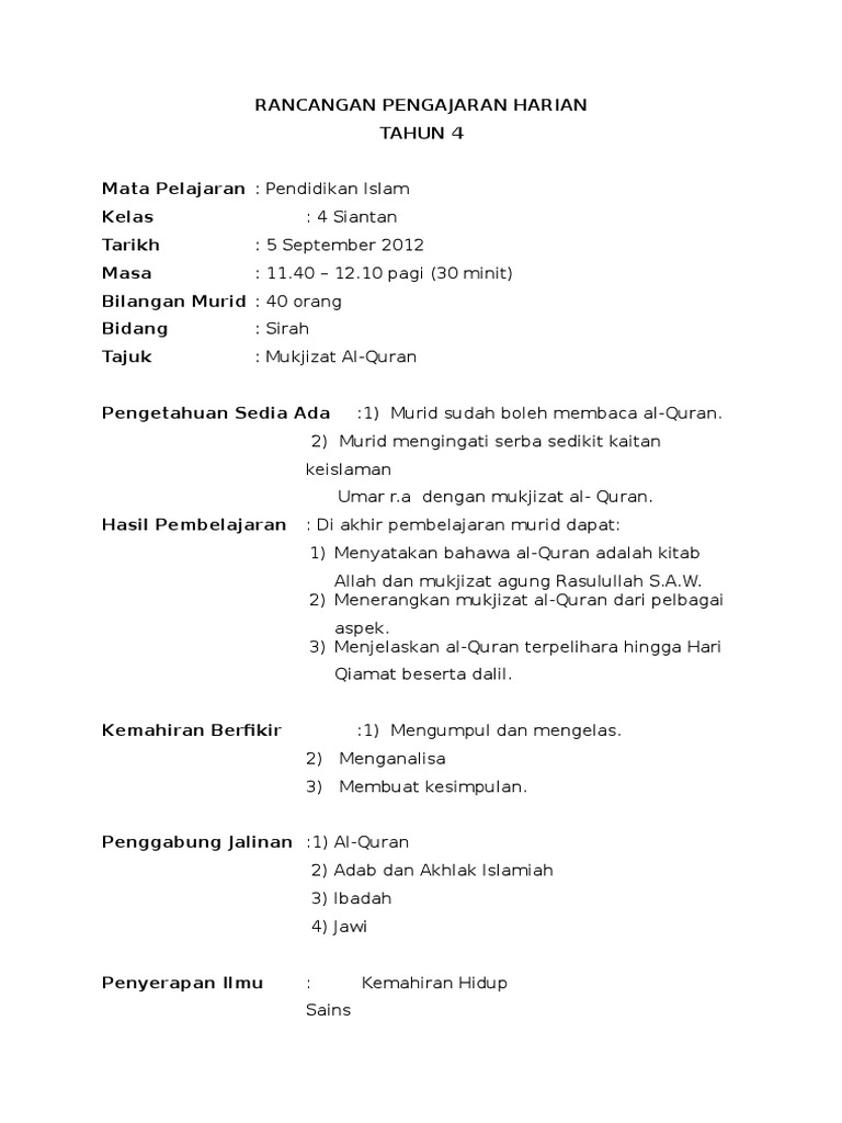Rancangan Pengajaran Harian Pendidikan Islam Tahun 5