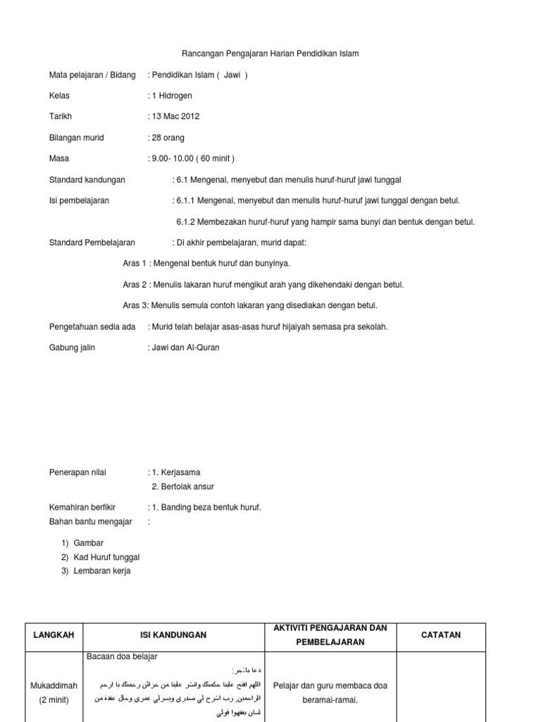 Http Hairol Weebly Com Uploads 4 5 3 8 45383519 Rph Tahun 1 Jawi Hbi Pdf
