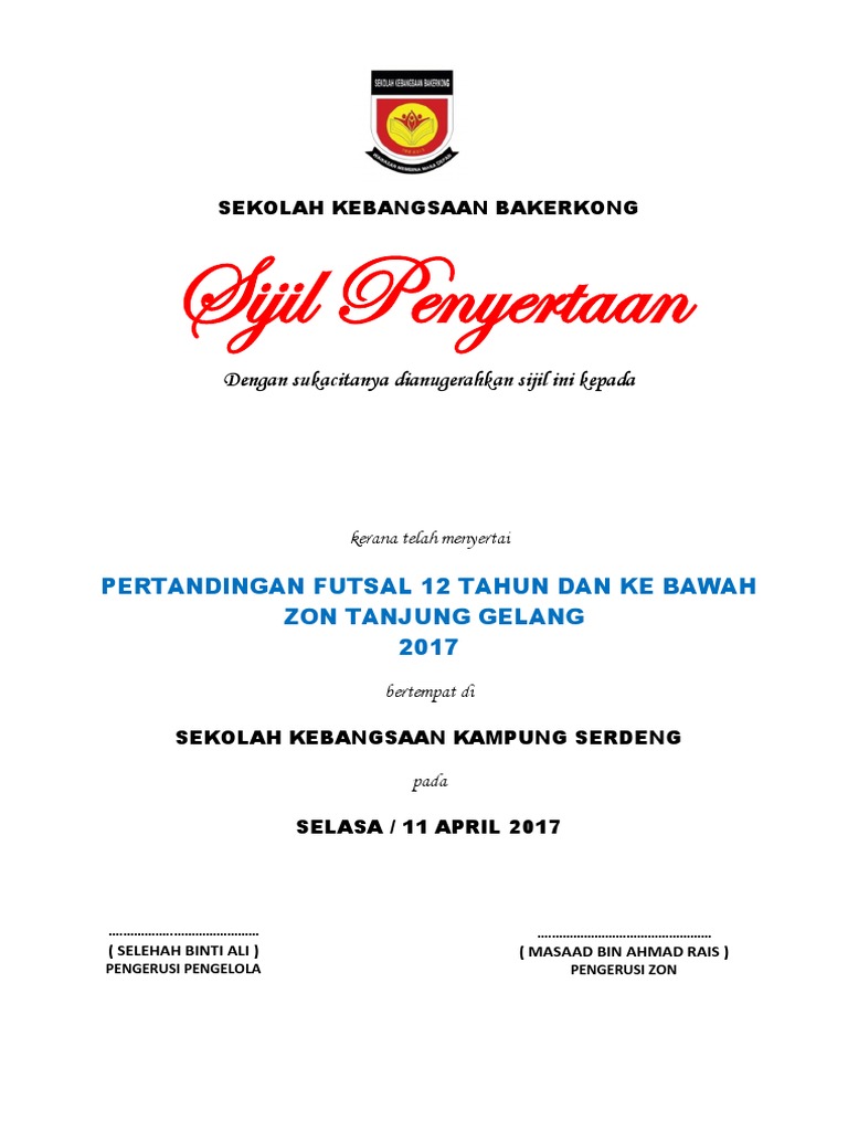 Contoh Sijil Penyertaan Pertandingan Sekolah
