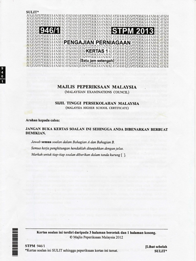 Pergajian Perniagaan Kertas Stpm Benar Penggal 1 Serta Cadangan Jawapan 2013
