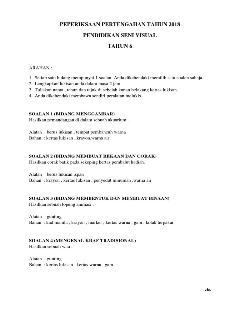 Seni Visual Contoh Kertas Soalan Untuk Peperiksaan Akhir Tahun Sukatan Lama Psv Tingkatan 1