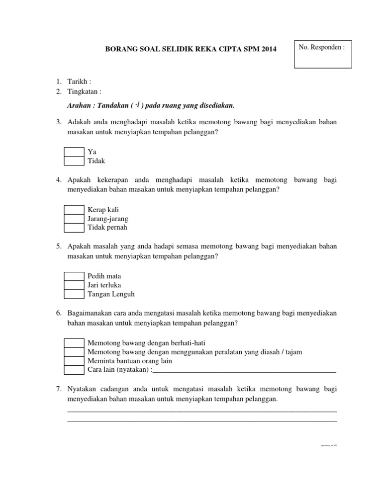 Borang Soal Selidik Reka Cipta Spm 2014