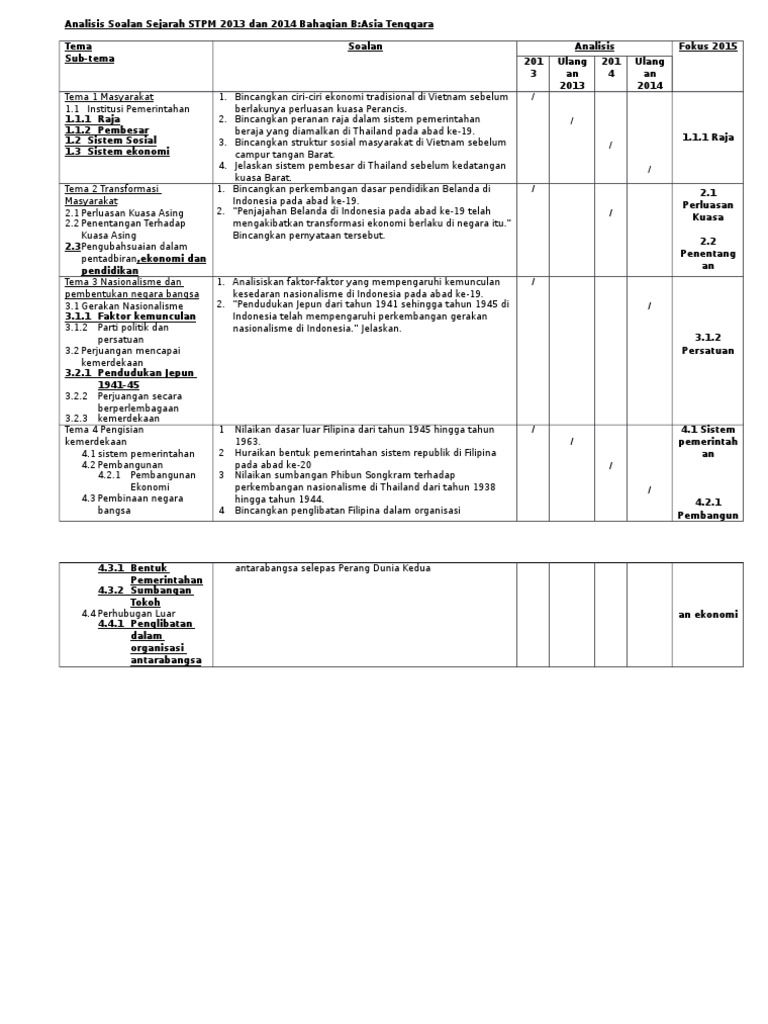 Analisa Stpm Sejarah Penggal 1 Docx Unjuran Soalan Stpm Penggal 1 A Analisa Soalan Mengikut Tema Sejarah Penggal 1 Stpm Tema 1 Tema 2 Tema 3 Tema 4 Course Hero