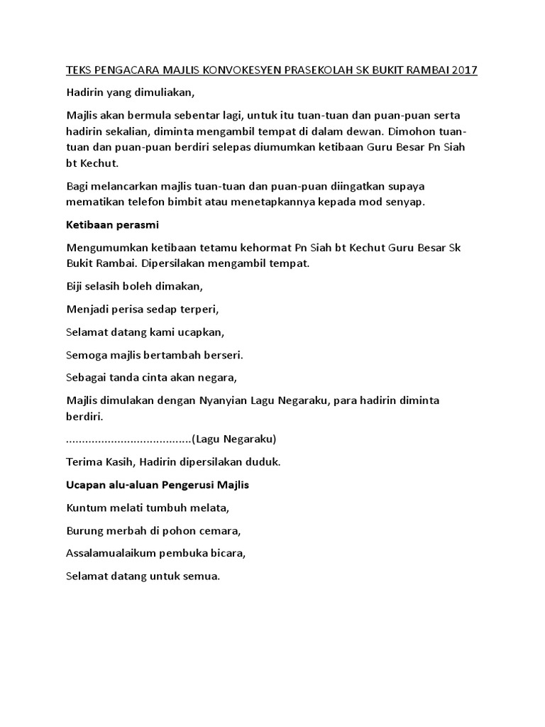 Teks Pengacara Majlis Konvokesyen Prasekolah Sk Bukit Rambai 2017