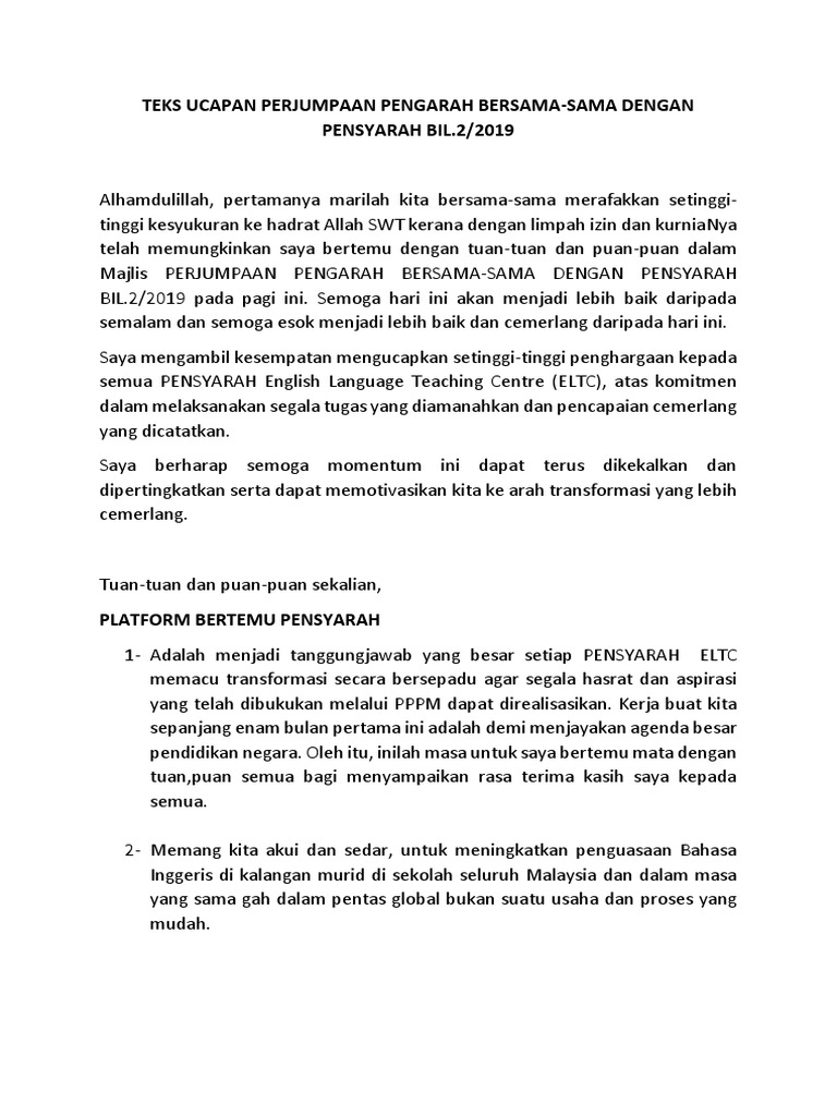 Teks Ucapan Perjumpaan Pengarah Bersama Pensyarah Bil 2 2019