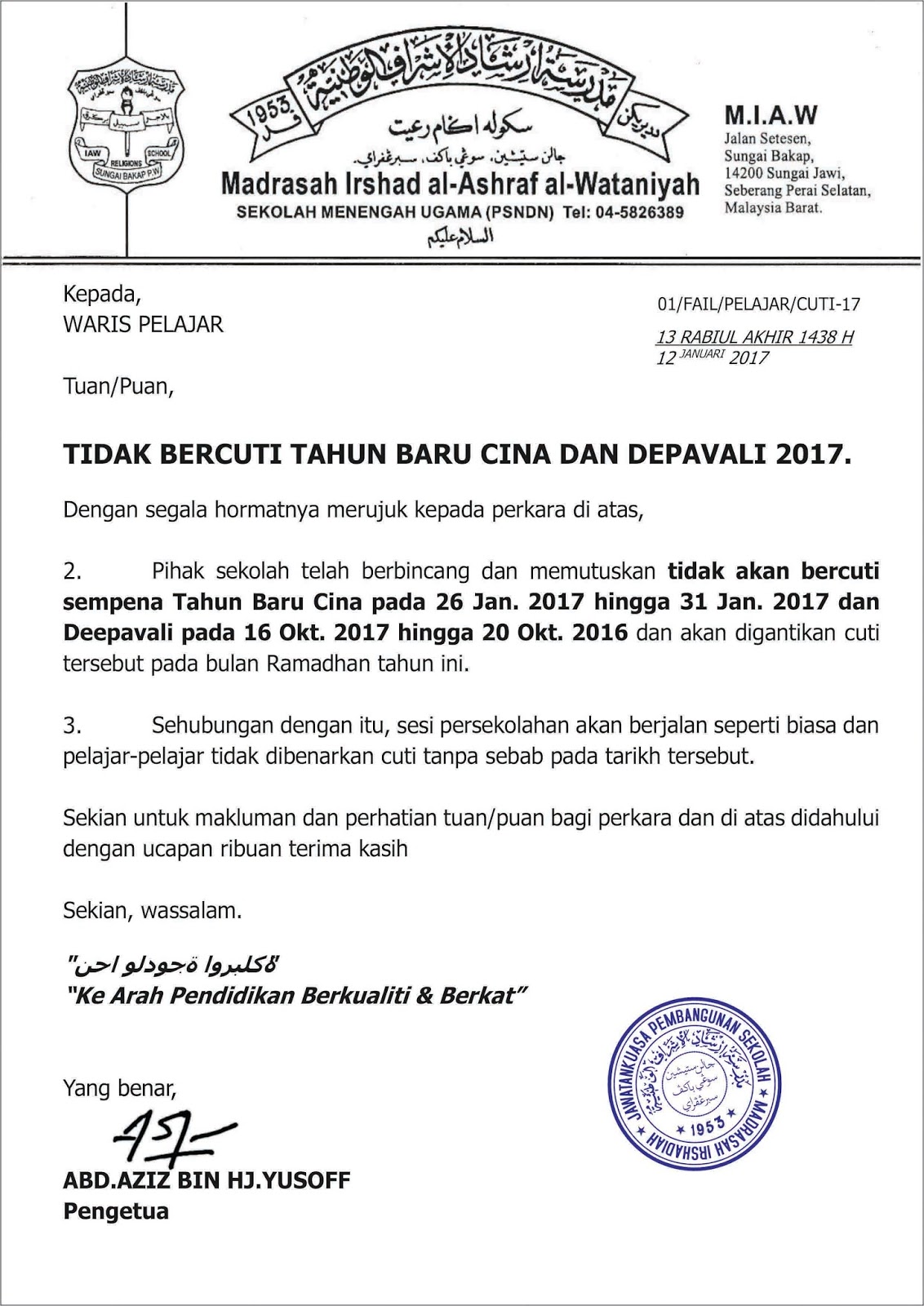 Makluman Cuti Persekolahan Sempena Cuti Sekolah Rendah Islam Al Amin Gombak Facebook