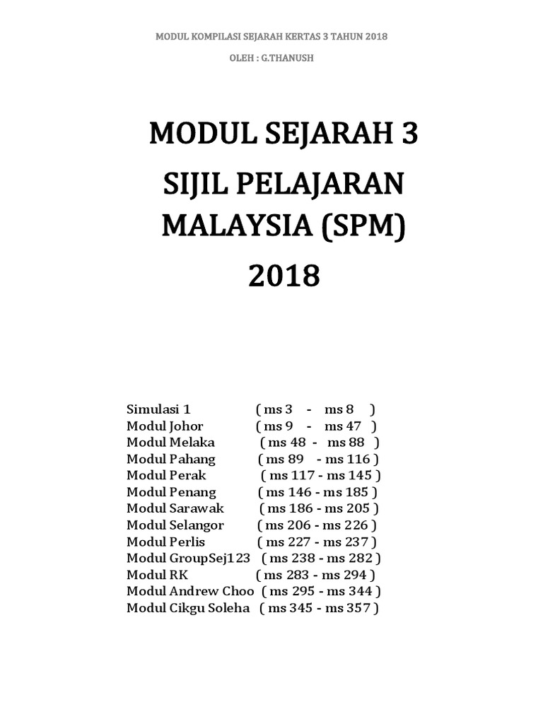 Pdf Modul Kompilasi Sejarah Kertas 3 G Thanush 1 Syikin Ramlie Academia Edu