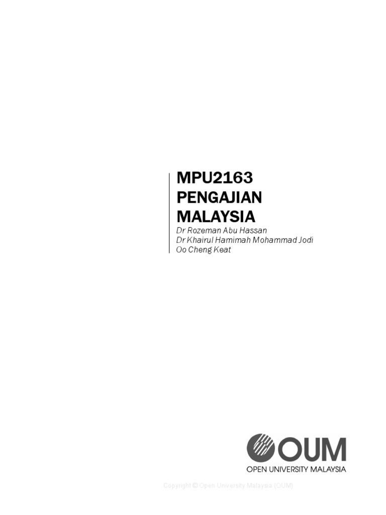 Mpu2163 Pengajian Malaysia Dr Rozeman Abu Hassan Dr Khairul Hamimah Mohammad Jodi Oo Cheng Keat