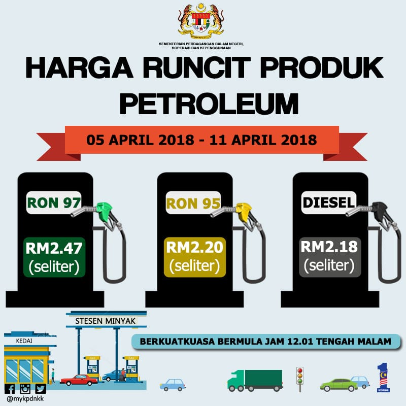 Harga Minyak Petrol Malaysia Ron95 Ron97 Diesel Jadual Bulan Terkini Diesel Petrol Malaysia
