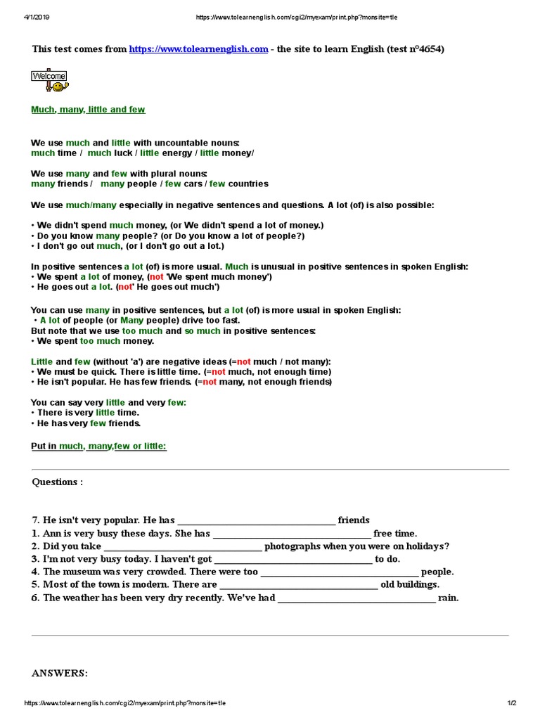 Much Many Little And Few Not Not English Language Languages