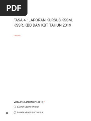 Fasa 4 Laporan Kursus Kssm Kssr Kbd Dan Kbt Tahun 2019 Rbt