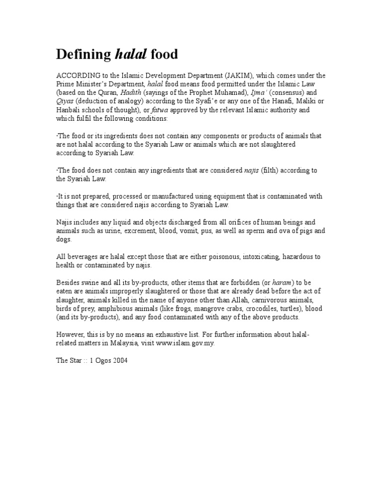 Defining Halal Food Qiyas Deduction Of Analogy According To The Syafi E Or Any One Of The Hanafi Maliki Or